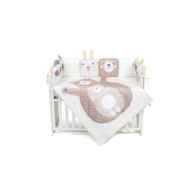 Zoo beige - постільний комплект з колекції Cuties. 6 з 8 подушечок захисту виконані у вигляді мордочок тваринок з об`ємними вушками.