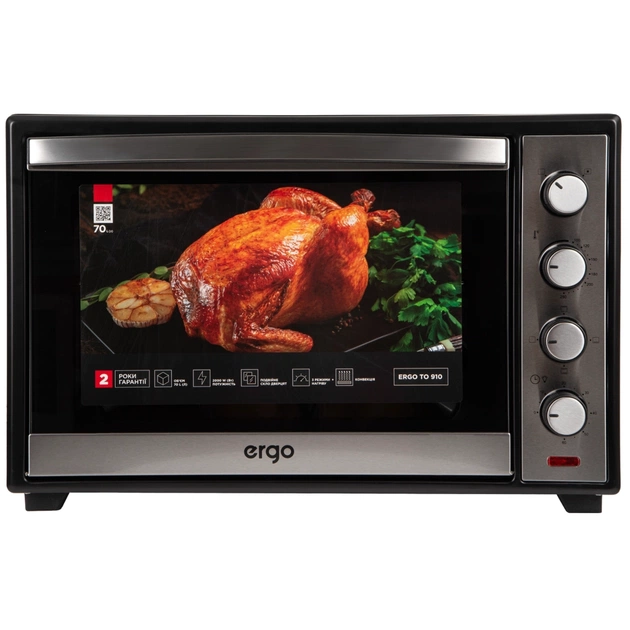 Модель ERGO TO 910 – це повноцінна електрична піч, яка має всі переваги стаціонарної духовки, але разом з тим дає змогу використовувати її в тому місці і в той час, де і коли це потрібно, наприклад, улітку на дачі. Дана піч має великий корисний об’єм 70 літрів, якого вистачить для одночасного приготування великої кількості продуктів. Ця модель оснащується чотирма ТЕНами сумарною потужністю 2000 Вт, які розігрівають камеру печі до 250 градусів.