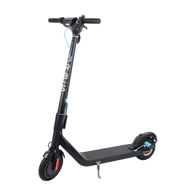 З потужністю двигуна 350Вт цей самокат з комфортом доставить вас вулицями міста. Дуже приємне керування самокатом обумовлено високим кермом і дуже міцною, надійною конструкцією. Ціліснолиті безкамерні шини на 100% не потребують технічного обслуговування. Великий дисплей надає чітку інформацію про швидкість, стан батареї та встановлений режим максимальної швидкості. Самокат має 2 передачі з обмежувачем швидкості на 15 км/год та 25 км/год. Гальмівний важіль активує заднє дискове гальмо і одночасно електричне гальмо на передньому колесі.