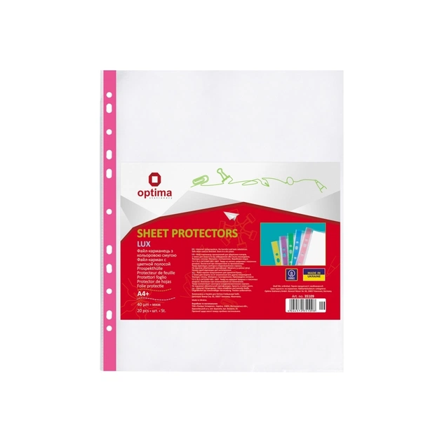 Файл Optima А4+ 40 мкм глянсових з рожевою стрічкою, 20 штук (O35109-09)