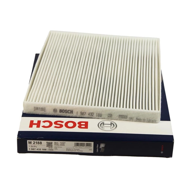 Салонний фільтр Bosch ефективно видаляє пил, пилок, дрібні частинки та інші забруднення, а деякі моделі мають активоване вугілля чи антибактеріальні шари для кращого поглинання неприємних запахів, шкідливих газів і алергенів, що підвищує комфорт і безпеку водія та пасажирів.