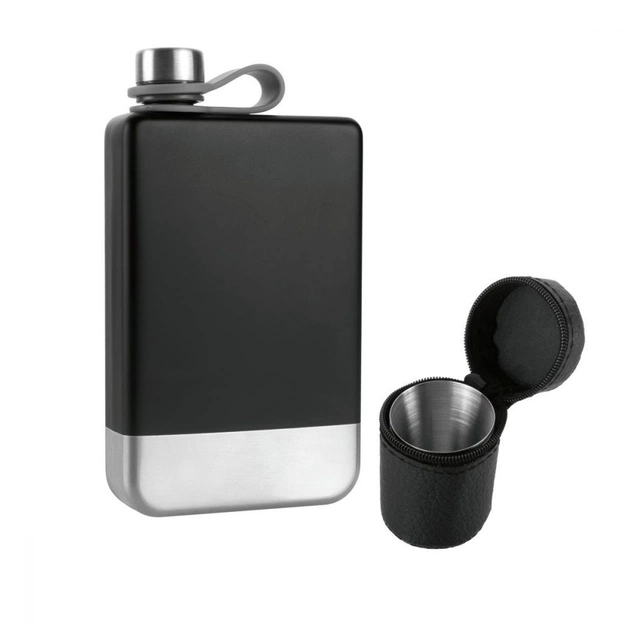 - Включає: чорну флягу з нержавіючої сталі, 4 чарки 30 мл в чорному чохлі, лійка