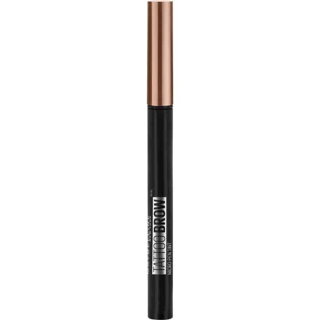 Maybelline New York Tattoo Brow Microblade Ink Pen — незвичайний б'юті-продукт для брів, якого у вас ще не було! Особливість цього фломастера полягає в тому, що він має скошений плаский стержень із зазубринами. Під час використання засіб залишає на шкірі тонкі штрихи, що імітують волосини. Таким чином, за допомогою цього косметичного продукту у вас вийде надати бровам візуальної густоти, відкоригувати їхню форму і зробити макіяж виразним.