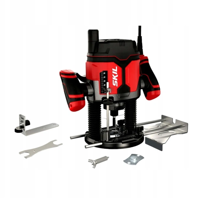 SKIL 1860 — це потужний фрезер потужністю 1400 Вт для нарізання пазів і кромок, формування, зняття фаски, виготовлення профілів і декоративного різання. Він підходить для широкого спектру матеріалів завдяки попередньому вибору швидкості та точному регулюванню глибини. Ви можете зручно налаштувати швидкість і глибину відповідно до поставленого завдання. Вбудоване електронне регулювання швидкості забезпечує оптимальну якість маршрутизації на попередньо вибраній швидкості. Гарна видимість вашої роботи забезпечується подвійним світлодіодним світлом. Цей фрезер по дереву має ергономічний дизайн і ручки з м’якою рукояткою для оптимального комфорту при роботі. Для більш чистого робочого середовища вбудований адаптер для пилососа підходить для більшості пилососів стандартного розміру. Блокування шпинделя забезпечує швидку та просту заміну насадок. SKIL 1860 AA постачається з прямим наконечником, трьома цангами, паралельною напрямною, кривою напрямною, круглою напрямною та копіювальним кільцем.