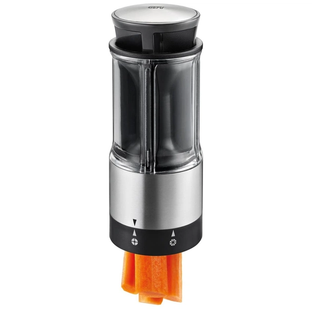 Гнучкість поєднується з дизайном: ви можете миттєво приготувати не лише хрусткі овочеві палички або апетитні картопляні дольки, але й фрукти, за бажанням, нарізані на четвертинки або вісімки.- Центрувальна вставка для вузьких фруктів або овочів, таких як полуниця, виноград або помідори чері.