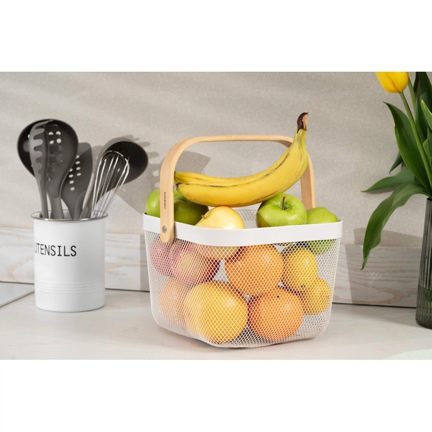 Фруктовниця Ardesto Midori з ручкою 25х24.5х18см, метал, дерево, білий (AR0901W)