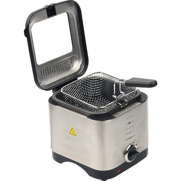 Фритюрниця First FA 5058-1 об'ємом 1,5 літра дуже зручна і проста в експлуатації, а завдяки своїм компактним розмірам не виникне проблем з її розміщенням і зберіганням. За допомогою даної моделі можна приготувати страви для всієї родини за невеликий проміжок часу: пончики, рибні палички, курячі ніжки, креветки, картопля-фрі і багато іншого.