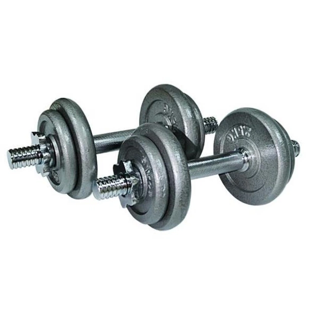 Даний набір дозволяє зібрати пару гантелей по 10 кг або одну гантель з вагою до 20 кг.