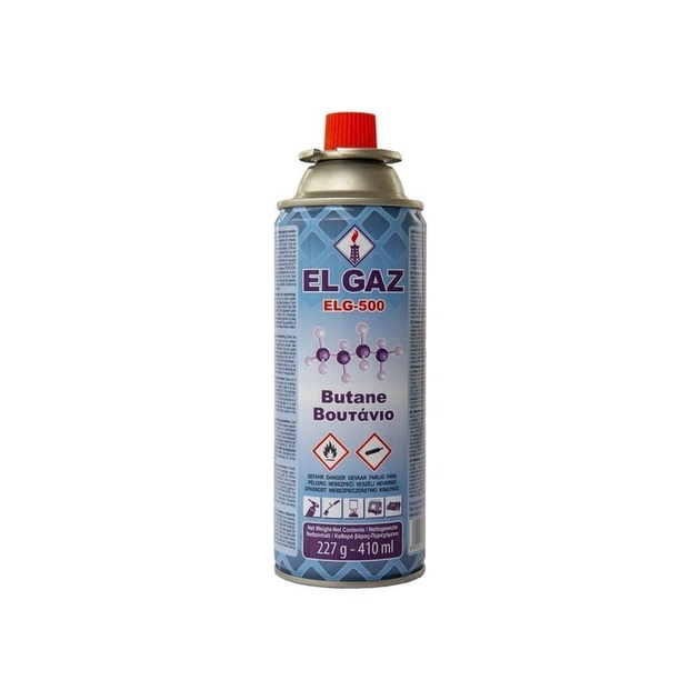 Газовий картридж EL GAZ ELG-500 із цанговим з'єднанням. Картридж (Цанговий балон) має 227 г бутанової суміші. Високопродуктивна газова суміш забезпечує високу температуру горіння. Це приблизно на 12% більше енергії, ніж пропан. Використовується з портативними газовими плитами, пальниками, паяльними лампами, що може стати корисним як у поході, на полюванні, рибалці, гаражі або СТО, так і на дачі, домашніх умовах.