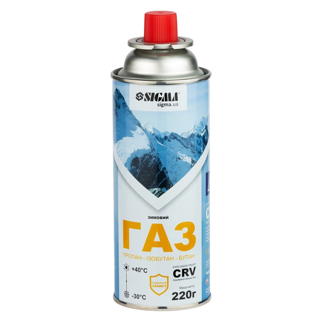 Балон газовий зимовий 220г CRV SIGMA є незамінною річчю для кожного рибалки, мисливця, туриста, дачника. Застосовується з усіма типами газових приладів, укомплектованих цанговим механізмом (портативні газові плити, пальники, паяльні лампи, обігрівачі та ін.)