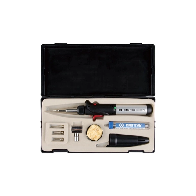 Газовий паяльник KING TONY 150 Вт, з комплектом змінних насадок (6BC3007)