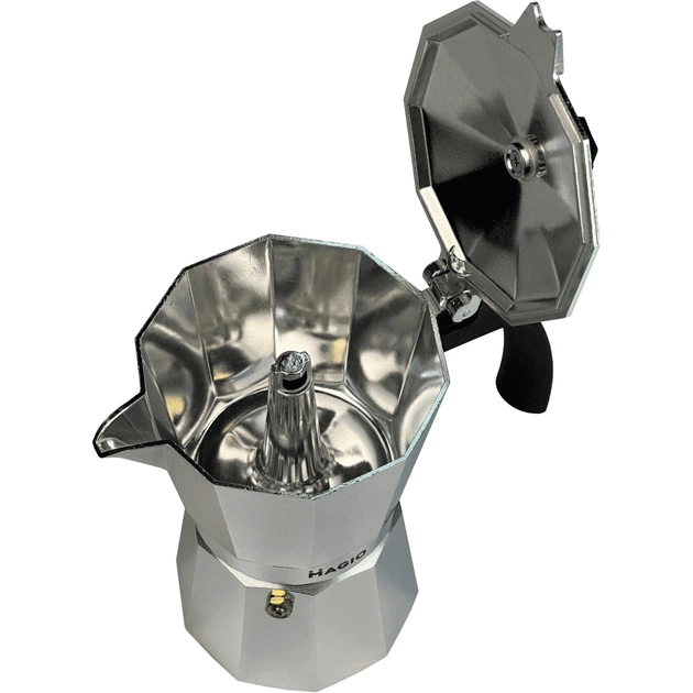 Класична кавоварка гейзера MG-1001 відмінно підходить для приготування традиційного еспресо. Виготовлено із безпечного алюмінію, який може вступати в контакт із харчовими продуктами, ручка із термостійкого пластику.