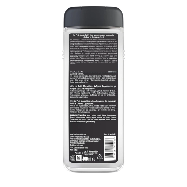 Гель для душу Le Petit Marseillais 4 в 1 Імбир і кипарисове дерево 400 мл (3574661715933)