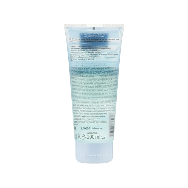 До складу гелю входять натуральні рослинні екстракти ромашки, м'яти, алое вера та алантоїну, дія яких знімає стрес, запобігає запальним та алергічним процесам. Інтенсивне застосування засобу підтримує оптимальний баланс шкіри завдяки здатності утримувати необхідну кількість вологи у клітинах. Завдяки цьому шкіра залишається м'якою і добре захищеною від згубного впливу навколишнього середовища.