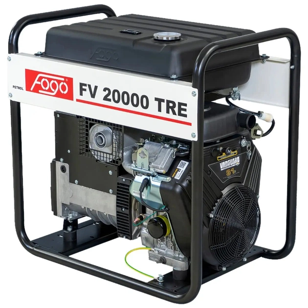 FOGO FV 20000 TRE - трифазний бензиновий генератор із двигуном Vanguard 5434. Запуск відбувається з допомогою електростартера. Номінальна потужність генератора на 1 фазі 9 кВт, на 3 фазах 14 кВт. Номінальна сила струму на 1 фазі 39,1 А, на 3 фазах 25,4 А. У генератор вбудована система стабілізації напруги (AVR) та термореле, що відключає двигун при досягненні критичної позначки робочої температури. Додатково реалізовано технологію захисту двигуна від роботи без мастила з його аварійним відключенням.