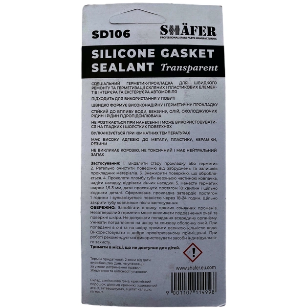 Герметик автомобільний SHAFER силіконовий прозорий 85 г (SD106) — універсальний засіб для герметизації, ремонту та фіксації різних елементів автомобіля.