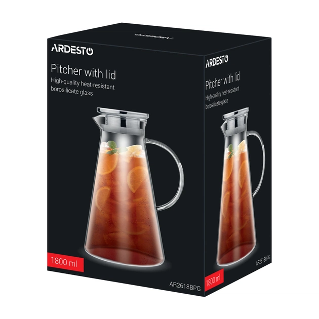 Глечик Ardesto виготовлено з екологічного боросилікатного скла, яке вирізняється міцністю і стійкістю до перепадів температури, що гарантує тривале слугування і безпечне використання. Завдяки термостійкості виробу, його можна використовувати як для крижаних лимонадів, так і для подавання гарячих напоїв, наприклад, узвару чи трав’яного чаю. Кришку з нержавіючої сталі, доповнено силіконовим ущільнювачем, завдяки чому будь-який напій буде зберігати свіжість і аромат. Об’єм моделі – 1 800 мл, тож це ліпший вибір для сімейних обідів і свят, вечірок і зустрічей у колі друзів. Після використання його легко очистити в посудомийній машині, що зумовлює практичність для повсякденного вжитку.
