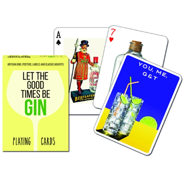 Гральні карти Джин - на зовнішньому та зворотньому боці зображення пов'язані з цим напоєм. Карти виготовлені з високоякісного картону з ламінуванням. Ламінування покращує ковзання та довговічність карт. Чудово підходять для аматорської гри. Розмір карт стандартний, вони ідеально підходять для будь-яких карткових ігор. Колода складається з 52 основних карт, 2-х джокерів та промокарти.