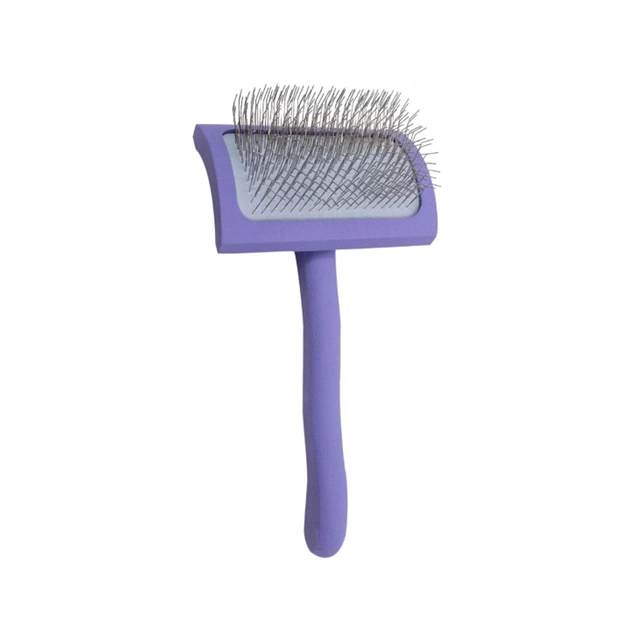 Гребінець для тварин Tauro Pro Line дерев'яна вигнута прямокутна, штифти 25 мм, фіолетова М (TPLB63651)