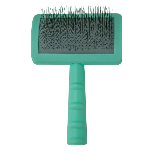 Розчіска-щітка має довгі зубчики, які дбайливо розділяють пасма шерсті домашнього вихованця, що сплуталися. Оптимальний кут їх нахилу не дозволяє пошкодити шкіру домашньої тварини, роблячи її розчісування зручним та комфортним процесом.