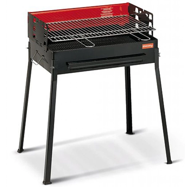 Ferraboli COMUNITA (128) - це прямокутний гриль-барбекю, який виготовлений з високоміцної сталі, покритий жаростійкою емаллю, укомплектований хромованою решіткою, висота якої регулюється. Грати забезпечені двома ручками.