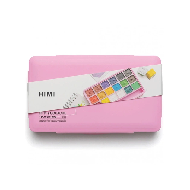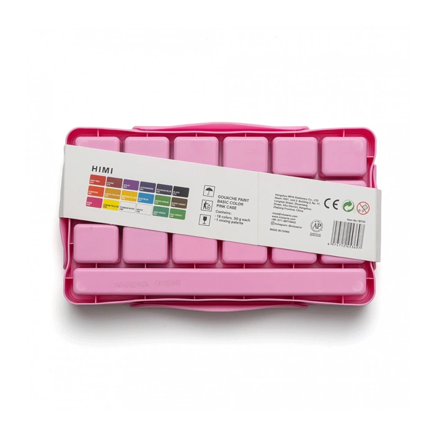 Гуашеві фарби HIMI Jelly Cup 18 кольори по 30 мл,, рожевий пластик.пенал (6974712453697)