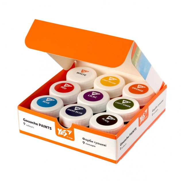 Гуашеві фарби Yes Orange Line 9 кольорів по 20 мл (230431)