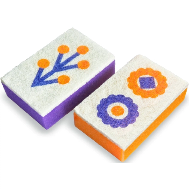 Працюючи над цією колекцією, ми звернулися до української вибійки – давнього мистецтва оздоблення тканин, ця техніка прийшла до нас ще з XVII століття й була популярною серед українських майстрів та майстринь, які за допомогою різьблених дерев'яних дощечок наносили орнаменти на текстиль. Губки для посуду Добра господарочка з колекції Українська вибійка вигідно відрізняються дизайнерським пакуванням - картонна обічайка, з насиченими кольорами помаранчевого та фіолетового відтінків, що привертають увагу. А фірмові принти на фібрі у стилі вибійок наповнять кухонний простір красою, затишком та гармонією. Щільний поролон забезпечує міцність та довговічність, товщина фібри на 20% більша, ніж у у класичній лінійці Добра господарочка, що робить губки ще ефективнішими. Губки легко віджимаються і не накопичують в собі зайвої вологи. Завдяки щільній структурі поролону утворюється багато густої піни, що сприяє економії миючих засобів.