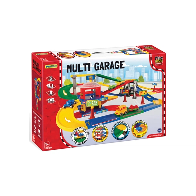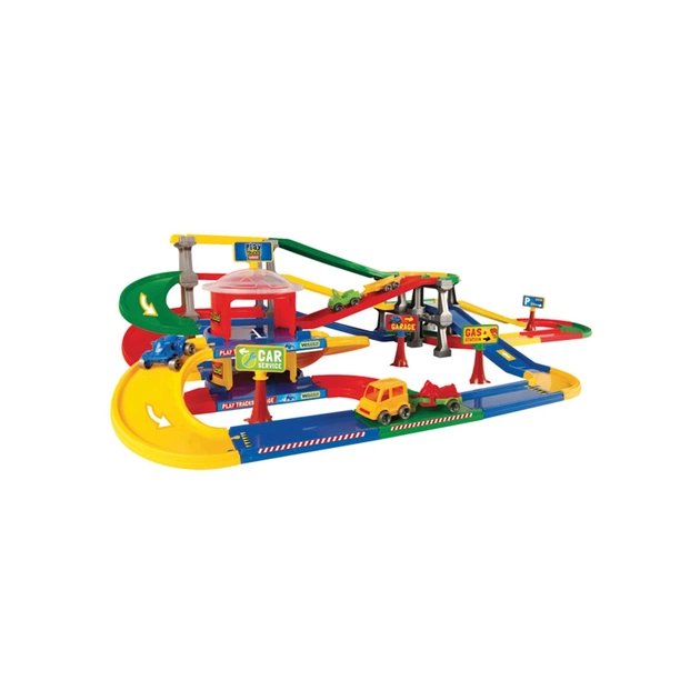 Паркінг з серії Play Tracks Garage сподобається всім любителям машинок і треків. Сучасна, легка і проста в складанні конструкція дозволяє зібрати різні траси і забезпечить вашій дитині багато годин захопливої гри. З різнокольорових елементів можна скласти кількаповерхову дорогу загальною довжиною 9,1 м і дворівневу станцію паркінгу. До комплекту входять декорації, наклейки, а також 5 транспортних засобів. Набір дозволяє придумувати багато сценаріїв ігор, розвиває уяву дітей і спонукає до креативності. Ігри з паркінгом покращують руховий розвиток наймолодших, особливо дрібної моторики, їх мануальні здібності, точність рухів і зорово-моторну координацію, навчають логічного мислення і просторової орієнтації. Різнокольорові елементи дозволяють вивчати основні кольори. Під час гри дитина знайомиться з принципами дорожнього руху, а також вчиться як безпечно переходити дорогу. Всі елементи виготовлені з високоякісного безпечного для дітей і міцного матеріалу, завдяки чому всі частини траси зберігають вигляд і колір протягом багатьох років. Набір упакований в гарну коробку, ідеальну на подарунок.