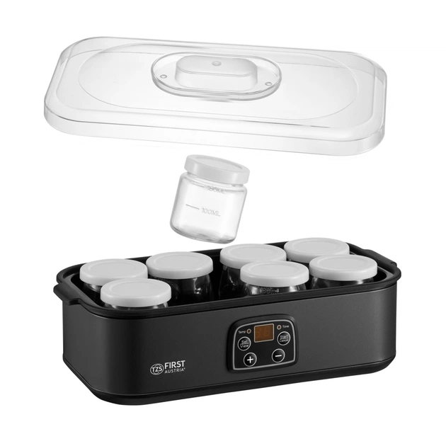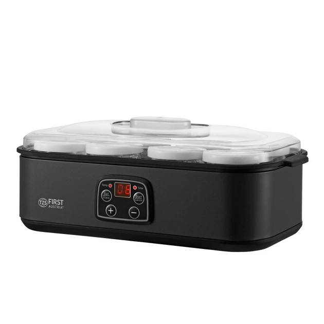 Зробіть власний домашній йогурт легко з допомогою практичної та компактної йогуртниці First FA-5120-2. Просто змішайте два інгредієнти — молоко та закваску або йогурт, а потім нехай йогуртниця зробить все інше. Соєве молоко, свіже молоко або сухе молоко, вибір за вами! Час приготування встановлюється вручну від 8 до 12 годин, але ніколи не перевищує 14 годин. Час, необхідний для отримання йогурту залежить від температури. Вбудований таймер має функцію автостопу.