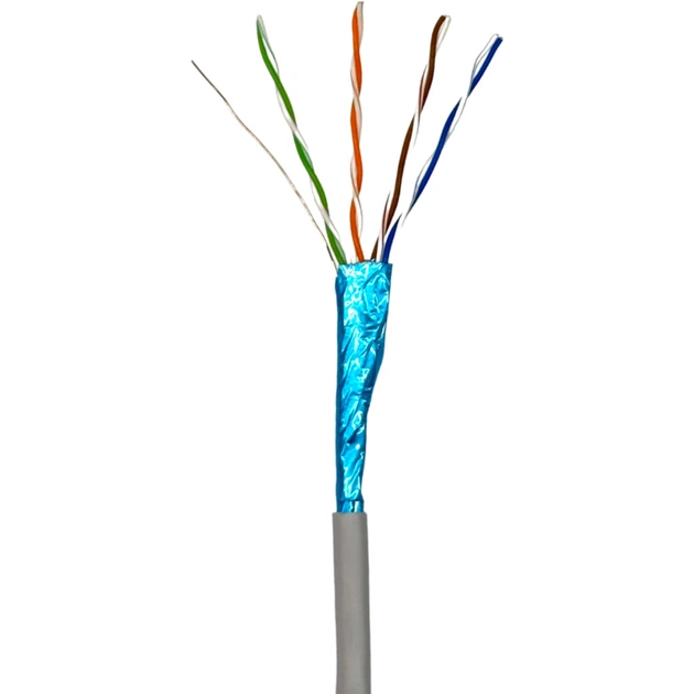 Алюмінієва жила в діаметрі 0.51 мм покрита міддю, екранований кабель - тип FTP, має 4 пари (8 жил) а його категорія Сat5e забезпечить швидкість передачі інформації до 1 Гбіт/сек. Відмінне рішення для внутрішніх робіт – квартира, будинок, офіс, склад тощо.