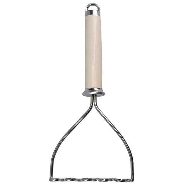 Картоплем'ялка KitchenAid необхідна для приготування однорідного пюре з картоплі, овочів або фруктів. Насадка виготовлена з товстої нержавіючої сталі, яка є міцною та стійкою до іржі. Ручка добре збалансована та ергономічна, що забезпечує комфорт і плавність роботи при інтенсивному використанні. Глянцева ручка має рельєфний логотип, а також сатинову хромовану підставку та петлю для підвішування. Її можна мити в посудомийній машині для легкого очищення.