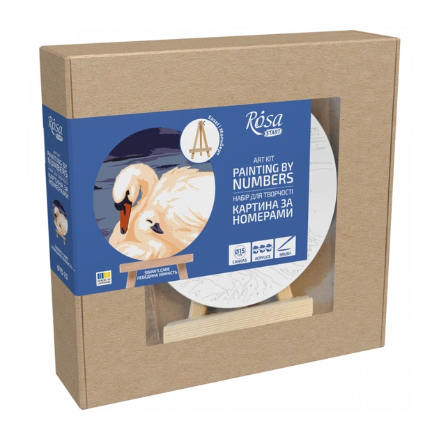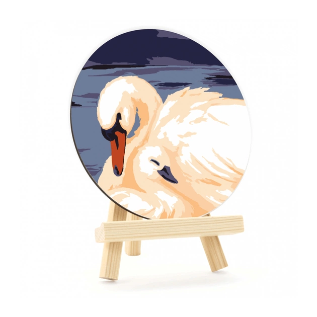 Картина по номерам Rosa Лебедина ніжність", кругла, 15 см, з мольбертом (4823098548706)