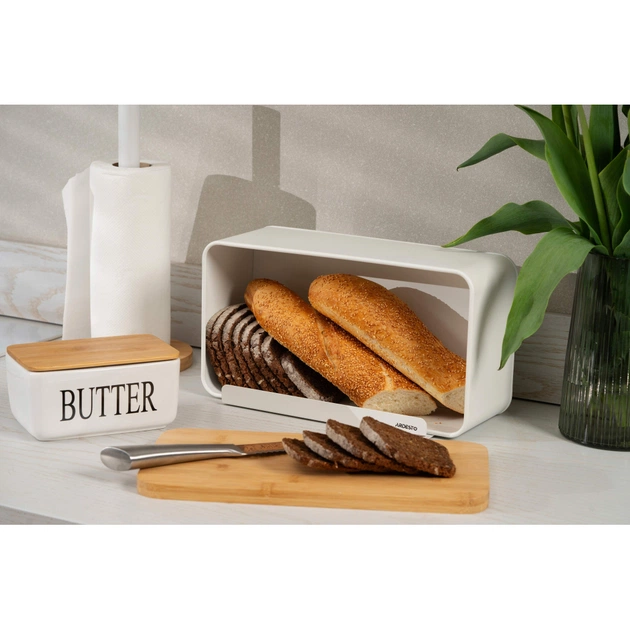 Хлібниця Ardesto Midori 33х13х18см, метал, бамбук, білий (AR0914WB)