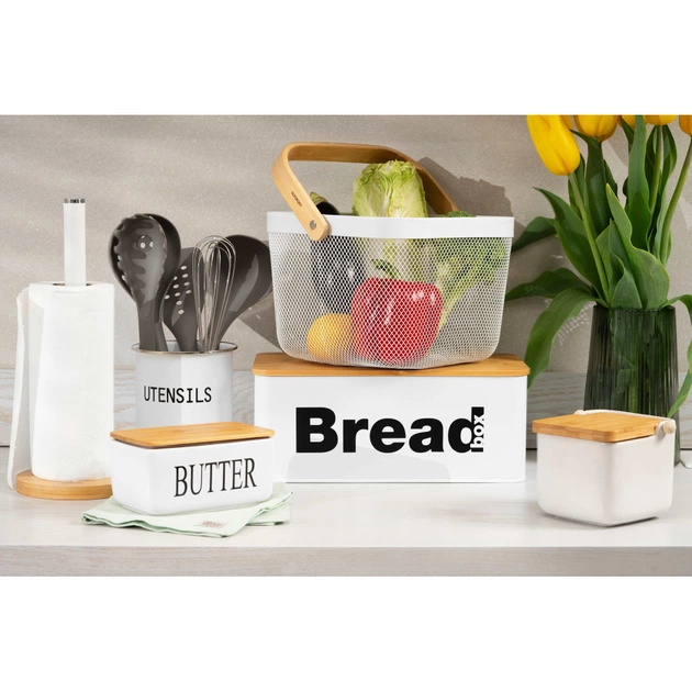 Хлібниця Ardesto Midori 33х18х13см, метал, бамбук, білий (AR0912WB)
