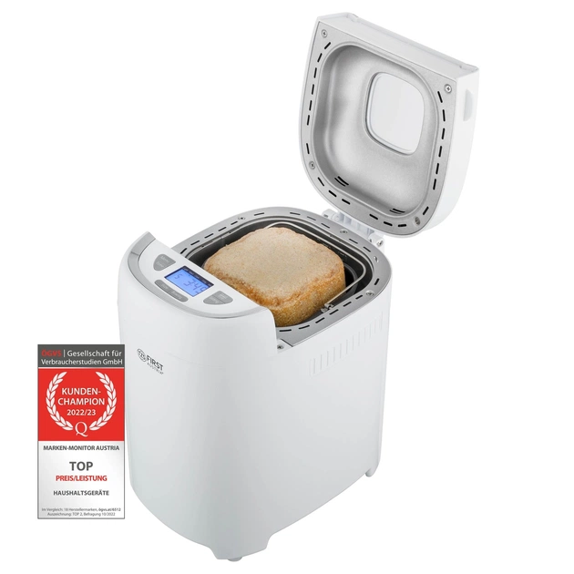 Свіжий хліб у духовці найвищої якості, коли вам це заманеться: компактна хлібопічка з функцією таймера та двома гачками для тіста миттєво випікає хліб і тістечка та підтримує ідеальну температуру вашого хліба завдяки функції збереження тепла. Просто помістіть інгредієнти у форму для випікання з антипригарним покриттям і виберіть програму та рівень підсмажування. Зручна електроніка пропонує 12 автоматичних програм з двома розмірами хліба для всіх видів борошна та будь-якого смаку.