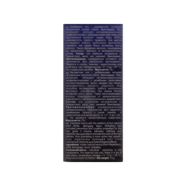 Безбарвна аюрведична хна від компанії Triuga Herbal - це натуральний порошок зі стебел лавсонії, який не фарбує пасма. Засіб покращує структуру, загальний стан і зовнішній вигляд волосся. Уже після першого використання локони стають міцнішими, гладенькими й набувають привабливого здорового блиску.