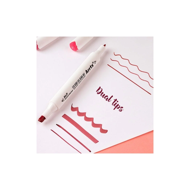 Ручки-маркери з двома наконечниками: кожен маркер обладнаний широким наконечником-долотом і тонким наконечником. Подвійні наконечники можуть допомогти вам у роботі з більшістю витворів мистецтва. Подвійні наконечники для точного виділення й підкреслення, для малювання тонкими та грубими лініями, оброблення деталей або широкого покриття зони.