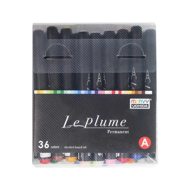 Художній маркер Marvy Набір спиртових маркерів, односторонні, Класичні відтінки, LE PLUME BRUSH, 36 шт (752481303698)