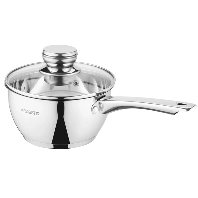 Ківш ARDESTO Gemini Lucca об’ємом 1,6 л – це зручний кухонний інструмент для щоденних завдань. Виріб виготовлено з нержавіючої сталі, що забезпечує довговічність і стійкість до корозії. Його діаметр становить 16 см, висота – 9 см, товщина стінок і дна – 0,5 мм і 2,9 мм відповідно, що сприяє рівномірному розподілу тепла під час приготування. Скляна кришка з отвором для пари забезпечує контроль процесу без потреби знімати її, а мірна шкала всередині чаші додає точності у дозуванні інгредієнтів. Руків’я з нержавіючої сталі зручно лежить у руці й не нагрівається надмірно під час готування. Ківш сумісний із усіма типами плит – газовими, електричними, склокерамічними, галогенними та індукційними. Виріб можна мити в посудомийній машині.