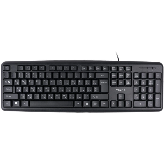 Клавіатура Vinga KB110BK - це ідеальний вибір для тих, хто цінує якість, зручність та естетичний дизайн. Призначена для використання з персональними комп'ютерами, ця повнорозмірна клавіатура поєднує в собі класичний стиль та сучасну функціональність. Головною особливістю цієї клавіатури є мембранна конструкція, яка забезпечує м'який хід клавіш та зменшує шум під час друку.