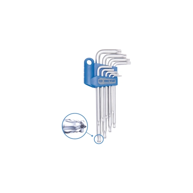 Ключ KING TONY Torx 9 шт. (Т10-Т50) Г-подібний подовжений з отвором (204B29PR)