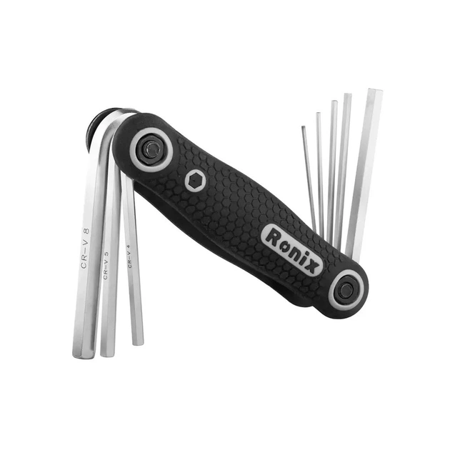 РозмірНабір складаних шестигранних ключів Ronix RH-2020 гарантує зручність і універсальність для швидкого закручування або відкручування кріпильних елементів. Цей набір включає вісім ключів розміром від 1.5 мм до 8 мм, що охоплює широкий спектр застосувань. Шестигранні ключі зібрані разом в одній ручці, що забезпечує легкий доступ та організованість. Складана конструкція дозволяє розкласти ключі під прямим кутом, забезпечуючи максимальний важіль у разі потреби, або ж повністю їх випрямити для використання в якості викрутки. Така гнучкість забезпечує ефективну та комфортну роботу в різних ситуаціях.
