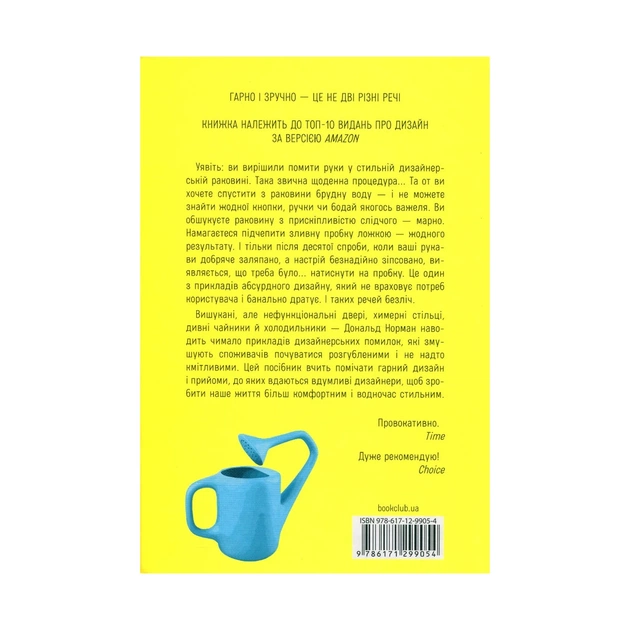 Уявіть: ви вирішили помити руки у стильній дизайнерській раковині. Така звична щоденна процедура... Та от ви хочете спустити з раковини брудну воду і не можете знайти жодної кнопки, ручки чи бодай якогось важеля. Ви обшукуєте раковину з прискіпливістю слідчого — марно. Намагаєтеся підчепити зливну пробку ложкою — жодного результату. І тільки після десятої спроби, коли ваші рукави добряче заляпані, а настрій безнадійно зіпсований, виявляється, що треба було… натиснути на пробку. Це один з прикладів абсурдного дизайну, який не враховує потреб користувача і банально дратує. І таких речей безліч. Вишукані, але нефункціональні двері, химерні стільці, дивні чайники й холодильники — Дональд Норман наводить чимало прикладів дизайнерських помилок, які змушують споживачів почуватися розгубленими і не надто кмітливими. Цей посібник вчить помічати гарний дизайн і прийоми, до яких вдаються вдумливі дизайнери, щоб зробити наше життя більш комфортним і водночас стильним.