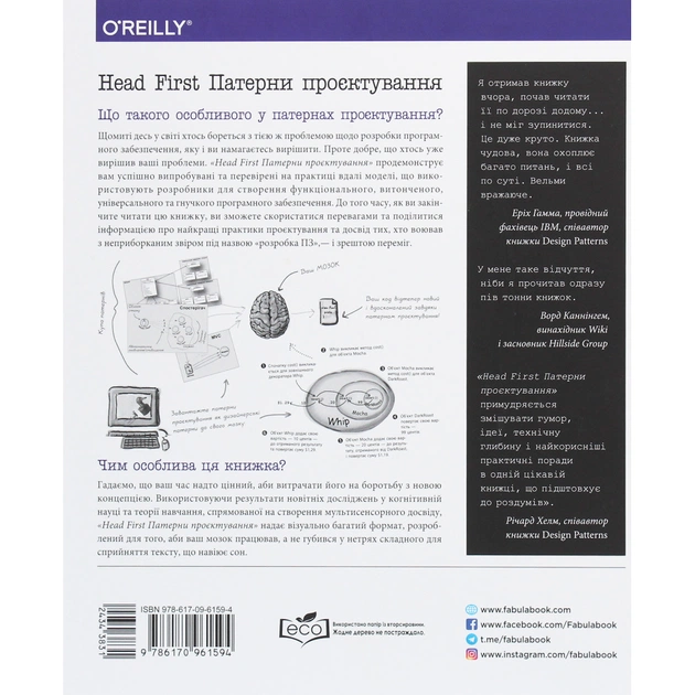 Візуально насичений формат книжки розроблений із використанням новітніх досліджень в галузях нейробіології, когнітивної науки і теорії навчання. Тому весь її матеріал миттєво запам’ятовується, і невдовзі ви зможете з легкістю спілкуватися з іншими членами вашої команди на «таємній мові» патернів проєктування.