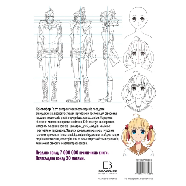 Крістофер Гарт, автор світових бестселерів із порадами для художників, пропонує стислий і ґрунтовний посібник для створення яскравих персонажів у найпопулярніших жанрах аніме. Формуючи образи за допомогою простих шаблонів, Кріс показує, як покроково малювати типових школярів і школярок, дітей, лиходіїв, комічних і фентезійних персонажів.