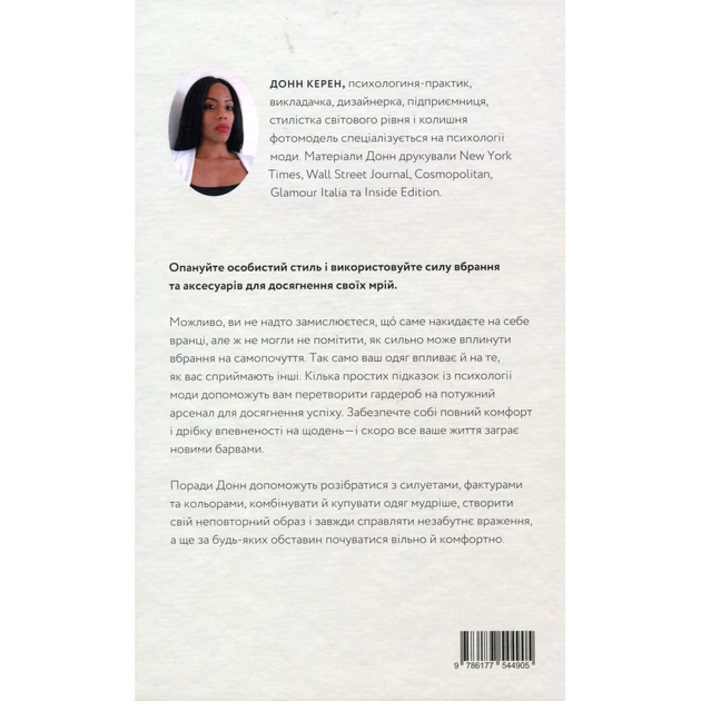 Книжка допоможе вам розкрити свій унікальний стиль, купувати одяг більш усвідомлено, використовувати колір на свою користь та зрозуміти, що краса — не має стандартів. Інформація, якою ділиться Донн, стане вашою силою, якою ви будете користуватися щоразу, як відчиняєте шафу, або обираєте вбрання для важливої зустрічі.
