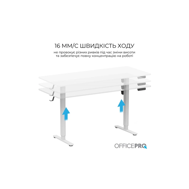 Стіл із електрорегулюванням висоти Officepro серії ODE1670 розроблений для бездоганної інтеграції в будь-який домашній інтер'єр або корпоративне середовище, пропонує ідеальне поєднання функціональності, довговічності та доступності. Завдяки потужному двигуну стіл забезпечує плавне, тихе та надійне регулювання висоти одним натисканням кнопки.