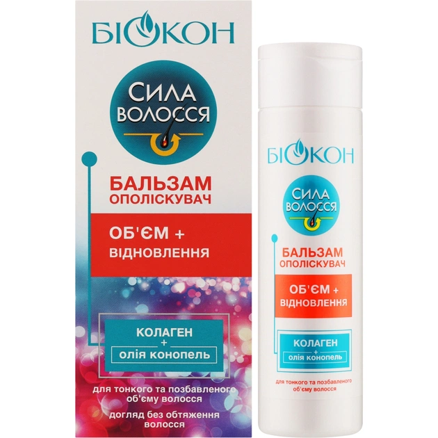 Кондиціонер для волосся Біокон Сила волосся Бальзам ополіскувач Обєм + відновлення 205 мл (4823110303320) - preview 1