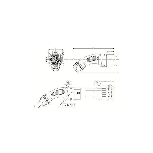 - Конектор: IEC 62196, Type2 (європейський стандарт), Mennekes, 7 контактів.